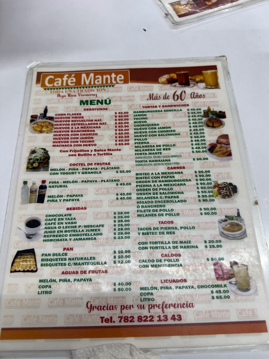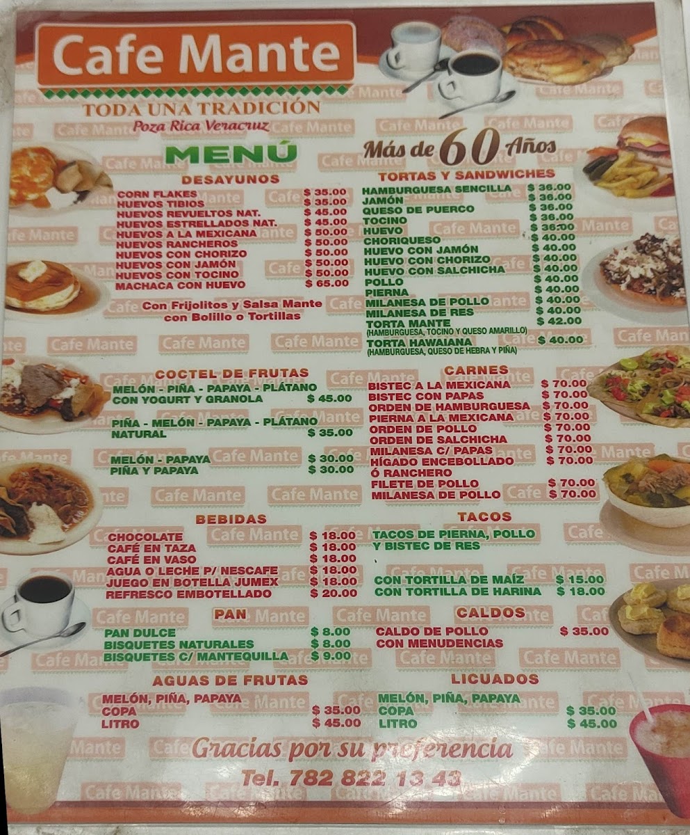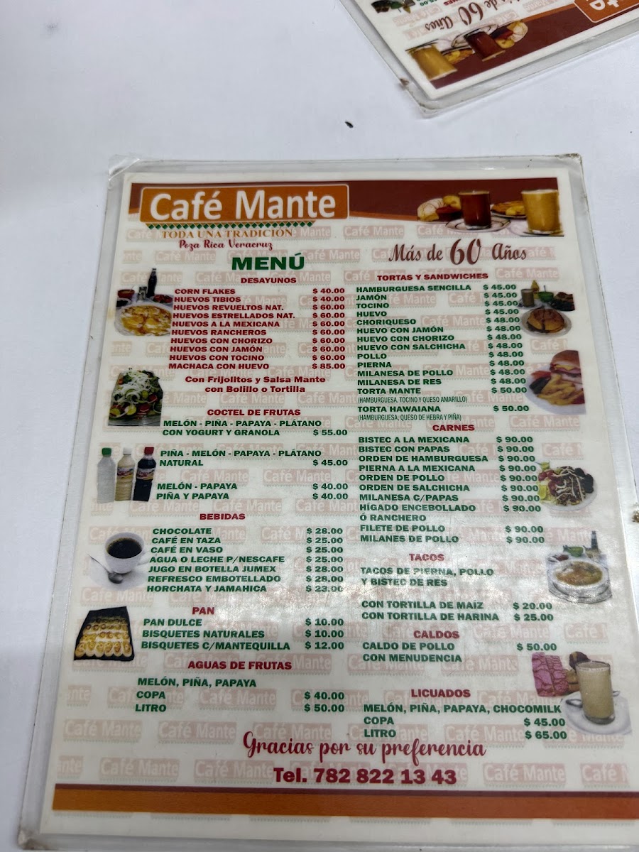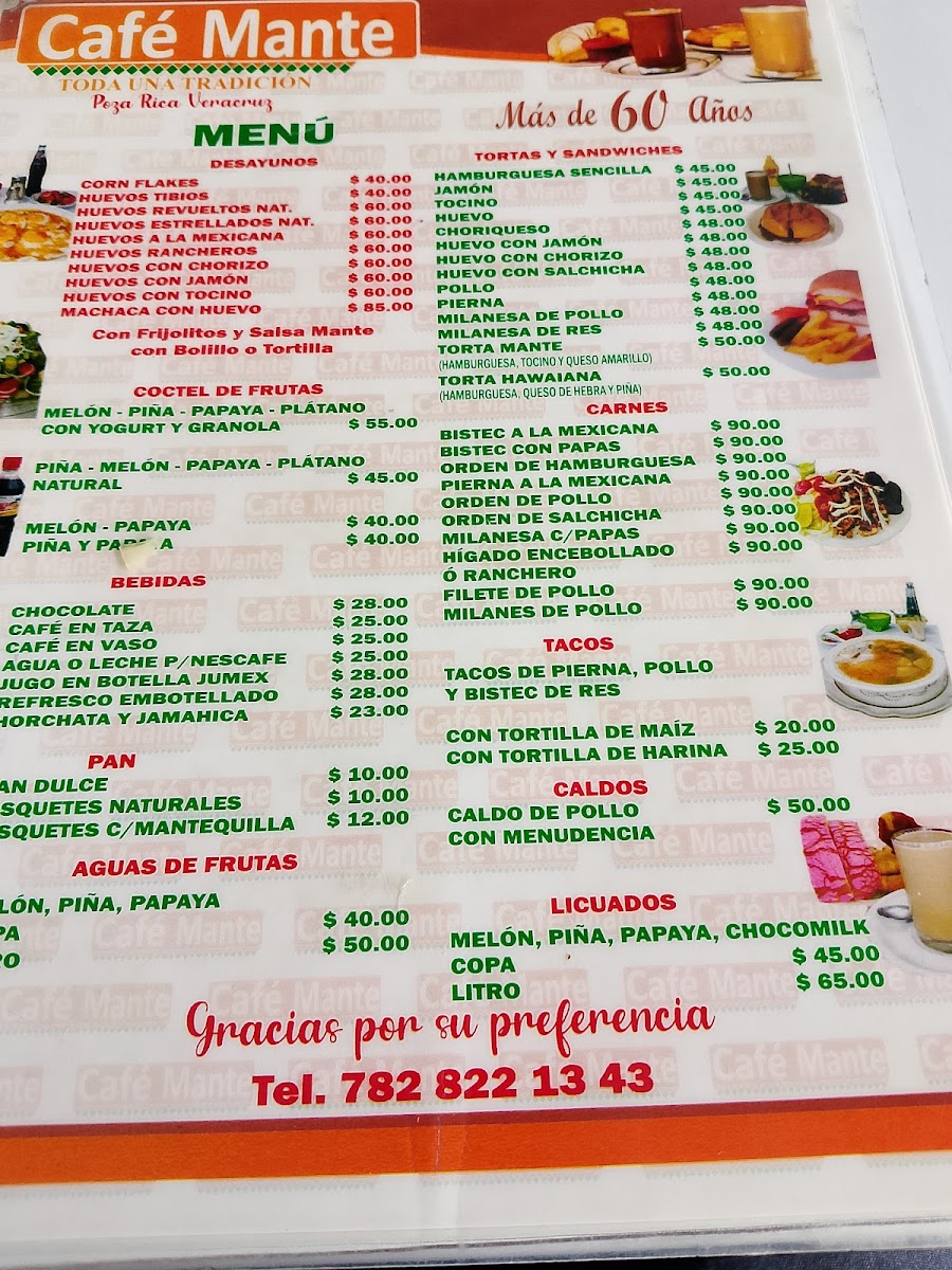 Additionally, the menu features traditional items such as biscuits with butter, sandwiches like torta de pierna and hamburgers, as well as milanesa de res served with fries. Coffee options include traditional café lechero.